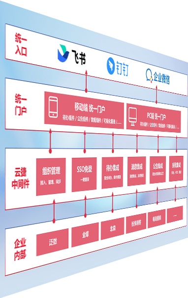 对协作平台提供支持服务,,,支持企业应用与协作平台对接,,,,包含组织同步、、、、消息集成、、待办集成等。。。支持目前主流的协作平台:钉钉、、企微和飞书。。